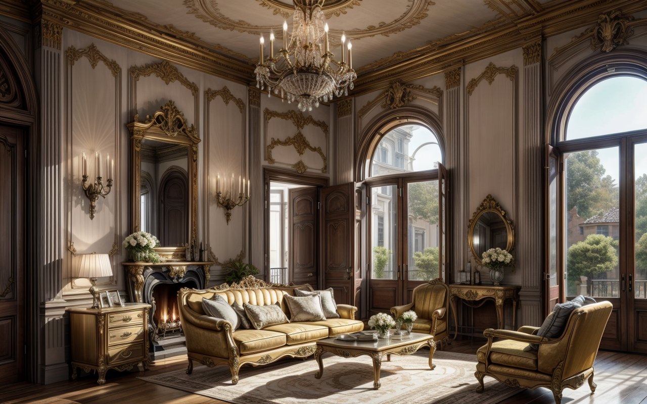 В те времена лепные украшения делались вручную из гипса или гипсовых смесей. Мастера создавали сложные формы, часто с использованием молдов, чтобы обеспечить более быстрый и однородный процесс. После высыхания лепнину окрашивали или покрывали позолотой — всё для усиления эффекта богатства и роскоши.