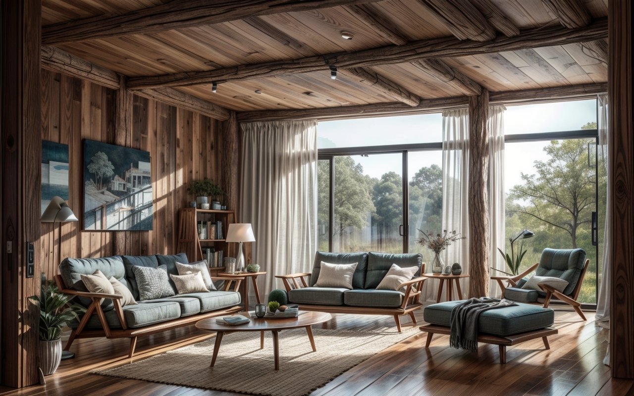 В основном используют такие материалы, как дерево, лен, хлопок, шерсть и натуральная кожа. Эти материалы подчеркивают природную красоту и создают ощущение тепла и уюта.