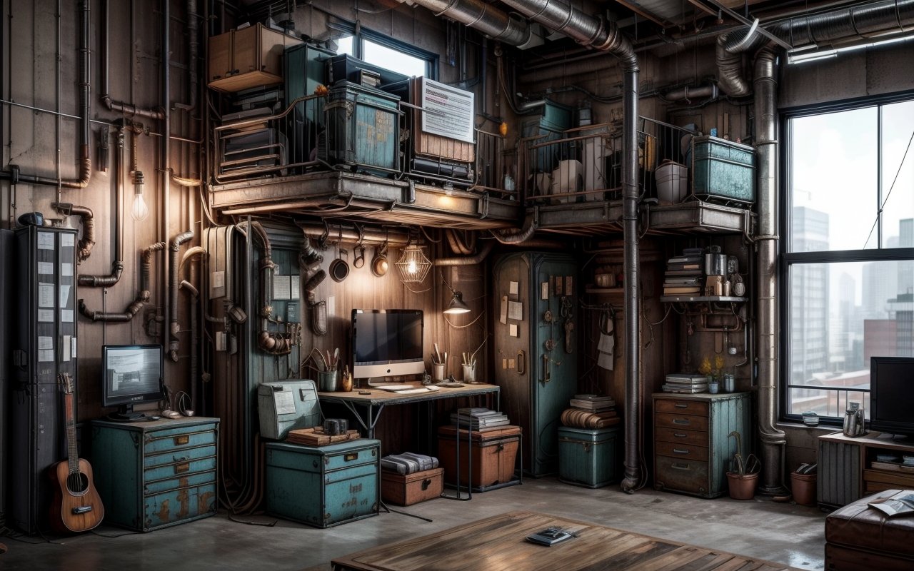 Порой умеренное использование промышленных деталей в дизайне создает баланс и не делает интерьер слишком перегруженным. Важно сохранять гармонию между стариной и современностью.