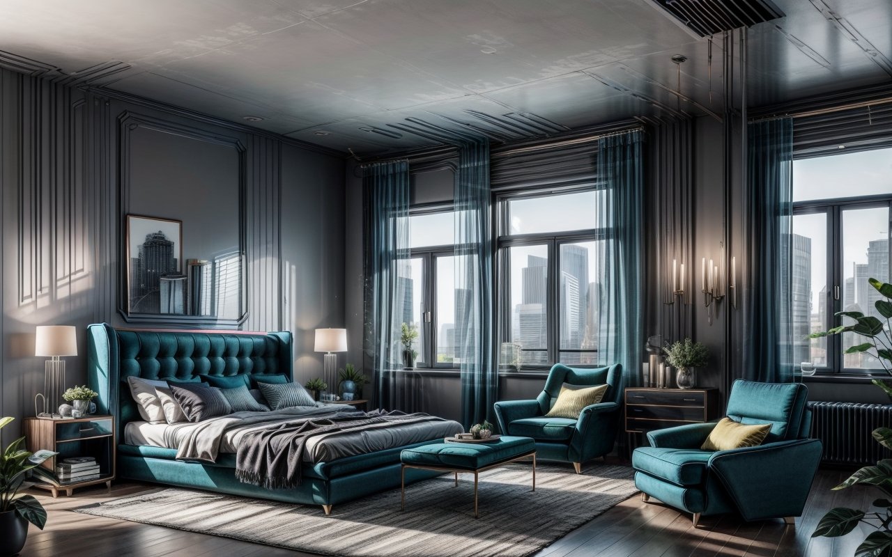 В спальне яркая мебель создает дерзкое и в то же время уютное настроение. Это может быть кровать с яркими мягкими изголовьями, стульчик или прикроватные тумбочки насыщенного цвета. Главное — не переборщить с яркостью, чтобы комната оставалась спокойной и расслабляющей.