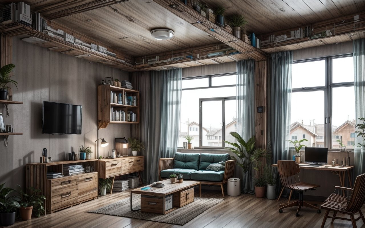 Используйте открытые полки для демонстрации переработанных декоративных элементов или книг, создавайте зонирование с помощью мебели из переработанных ресурсов — всё это поможет сделать пространство уютным и экологичным.