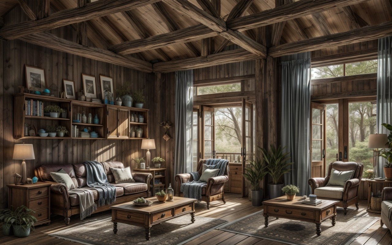 Эти материалы не только экологичны, но и добавляют текстурных акцентов, характерных для кантри-стиля.